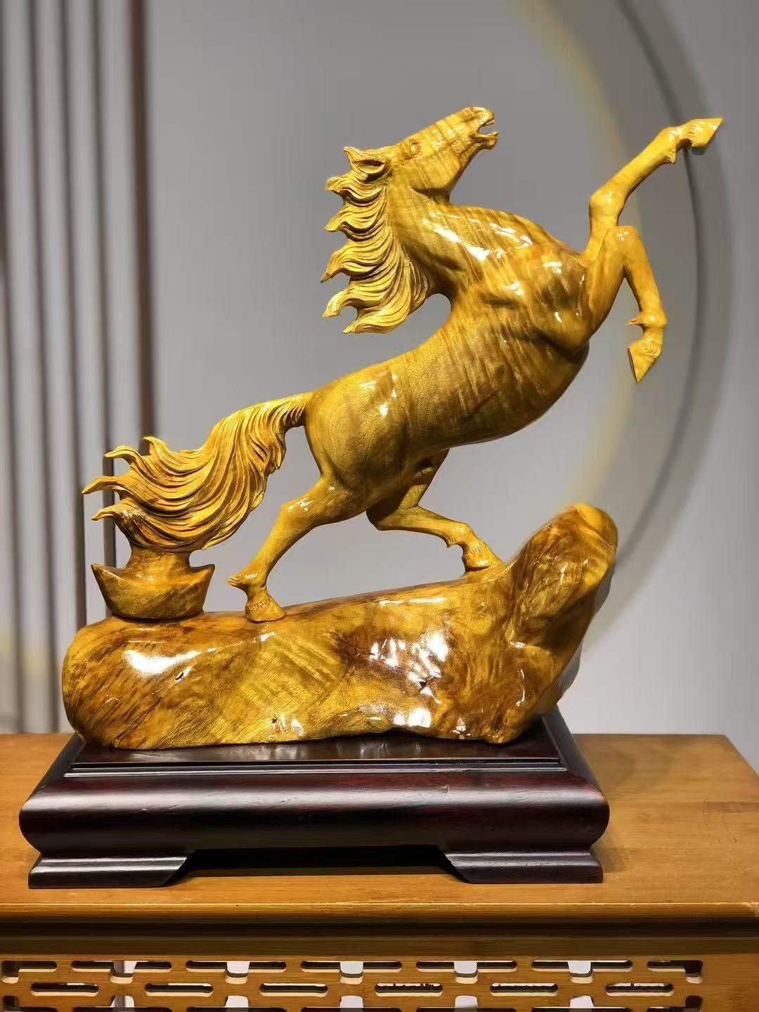 金丝楠木马到成功根雕工艺品摆件客厅办公室桌面玄关装饰品送礼