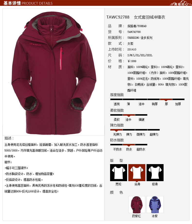 户外秋冬男女款套羽绒三合一冲锋衣保暖防风防水