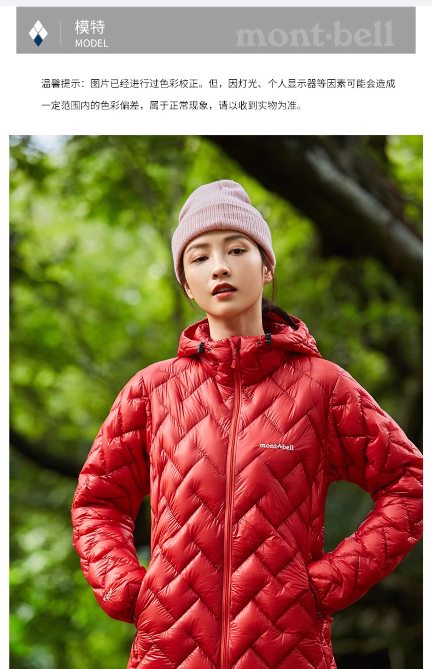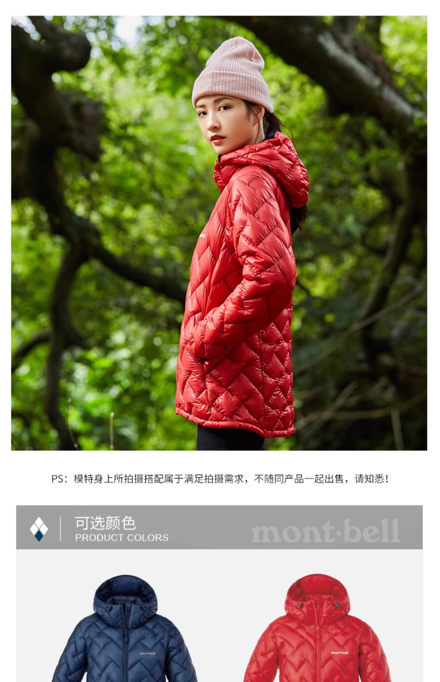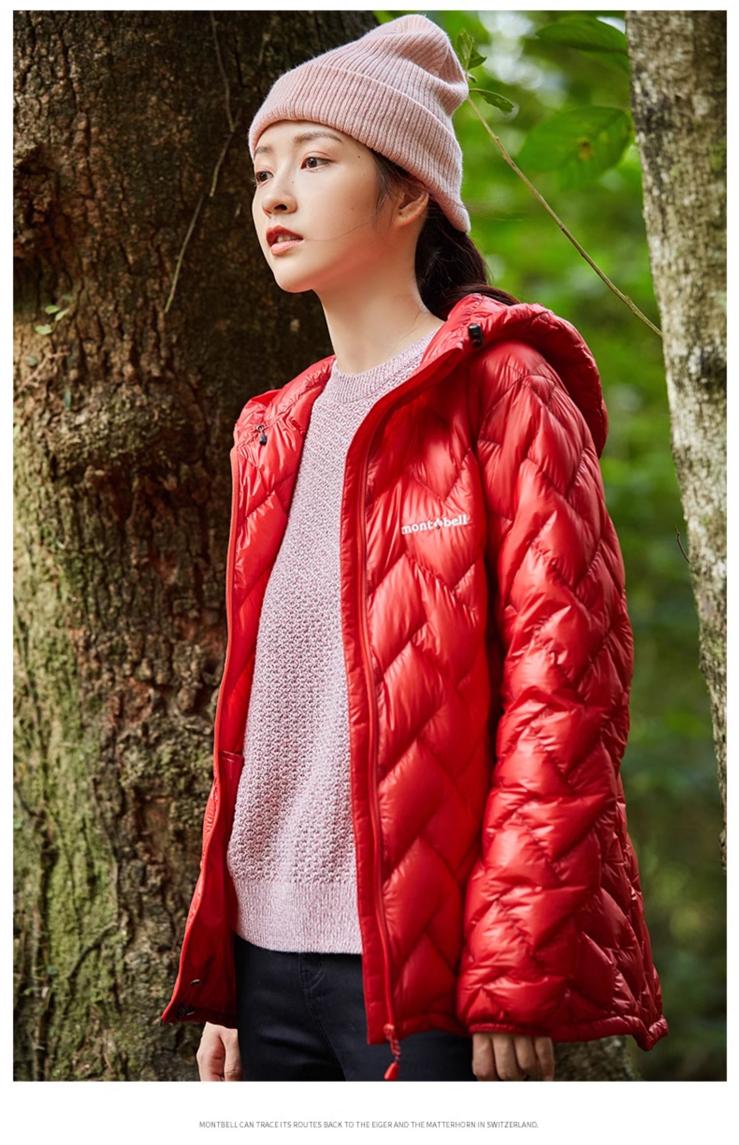 Montbell日本户外冬季休闲运动通勤轻薄连帽鹅绒羽绒服女保暖外套