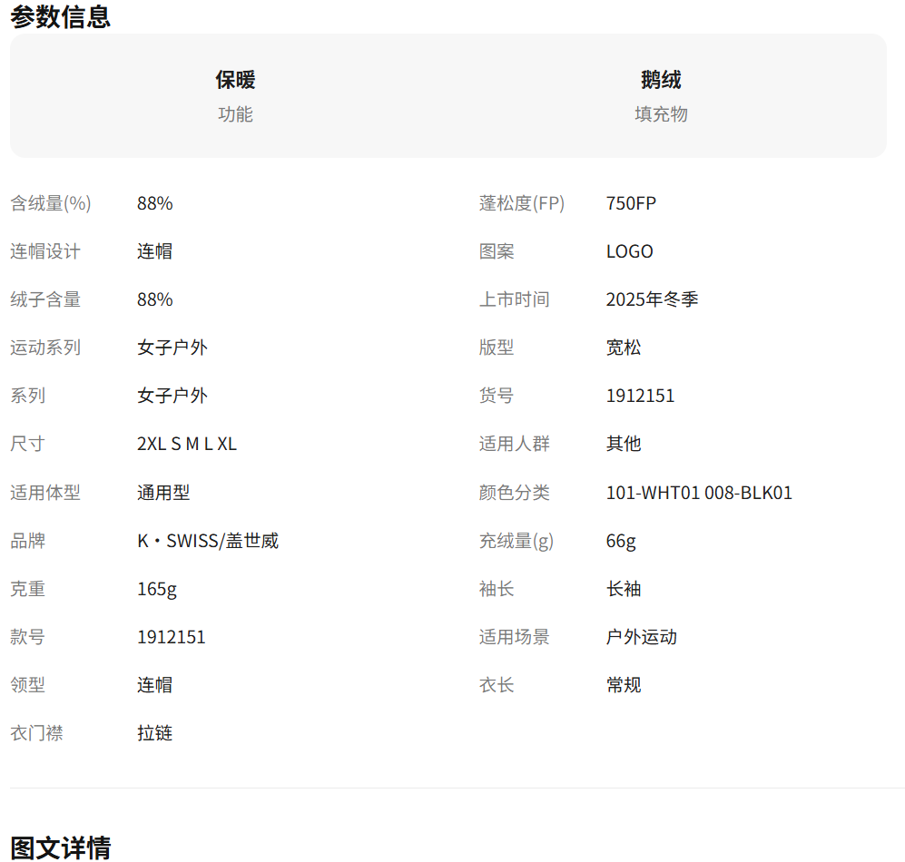 KSWISS盖世威鹅绒羽绒服女 25冬季新款保暖休闲运动厚外套