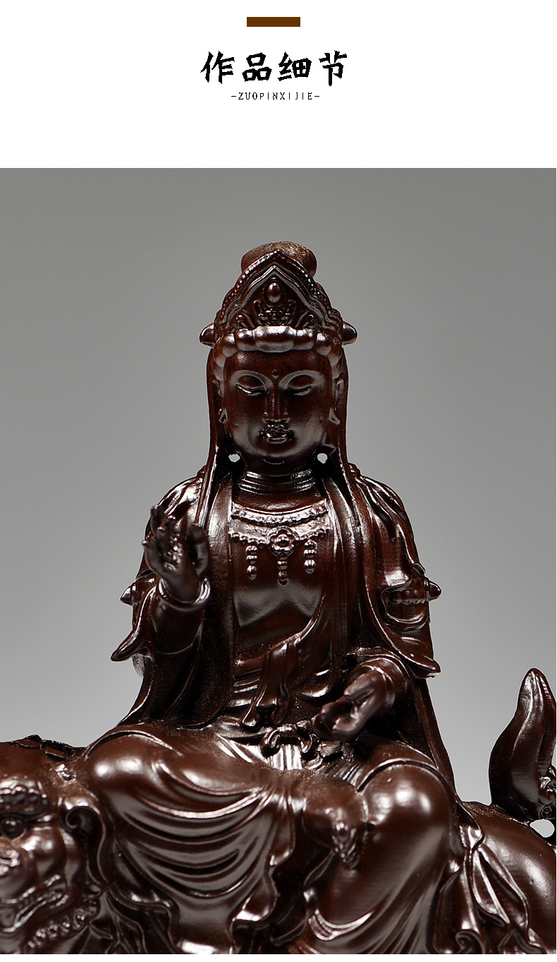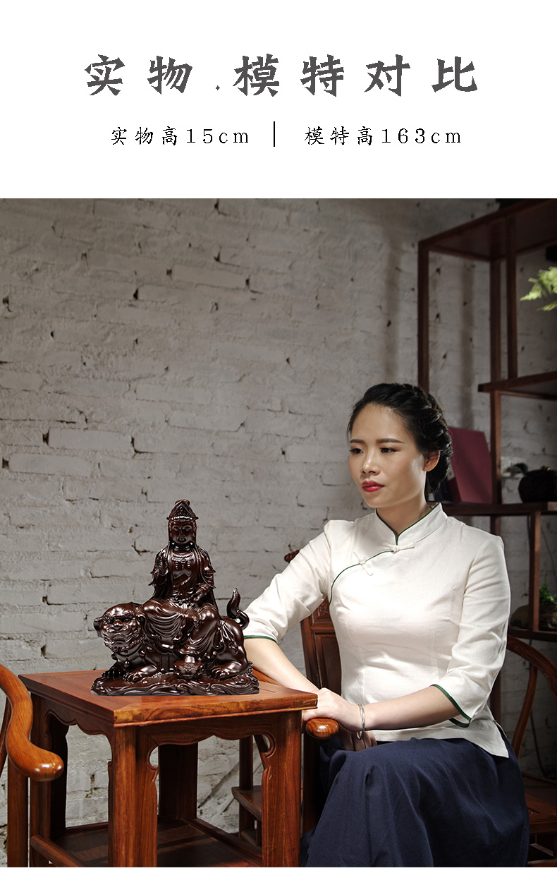 黑檀木雕文殊普贤菩萨摆件实木质佛像家居客厅坐像装饰红木工艺品
