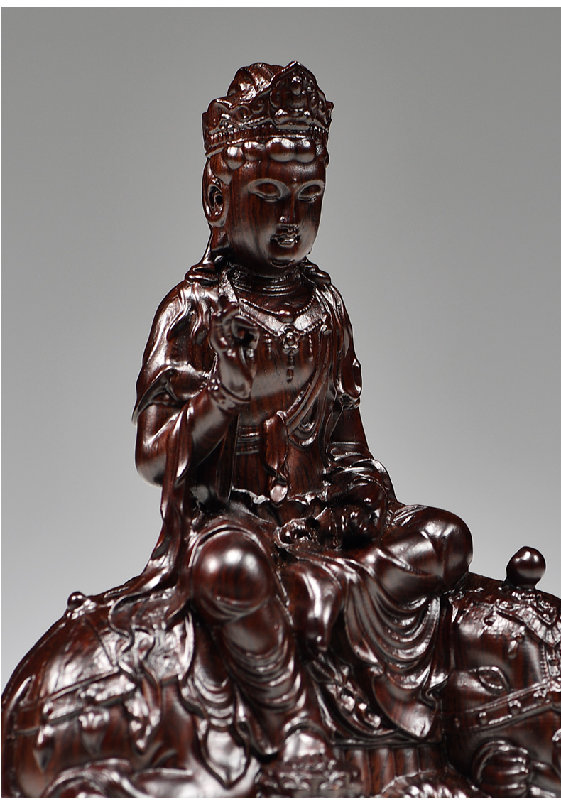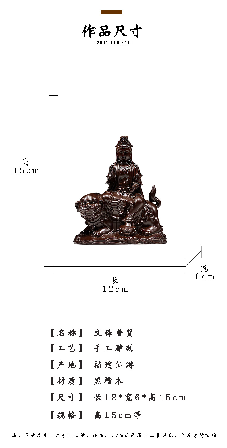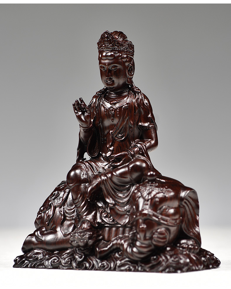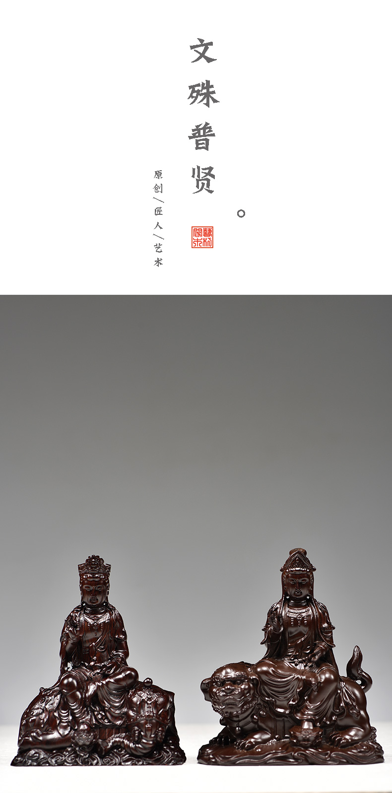 黑檀精雕文殊菩萨【高15cm】 黑檀精雕普贤菩萨【高15cm】 黑檀精雕文殊普贤【高15cm一对】