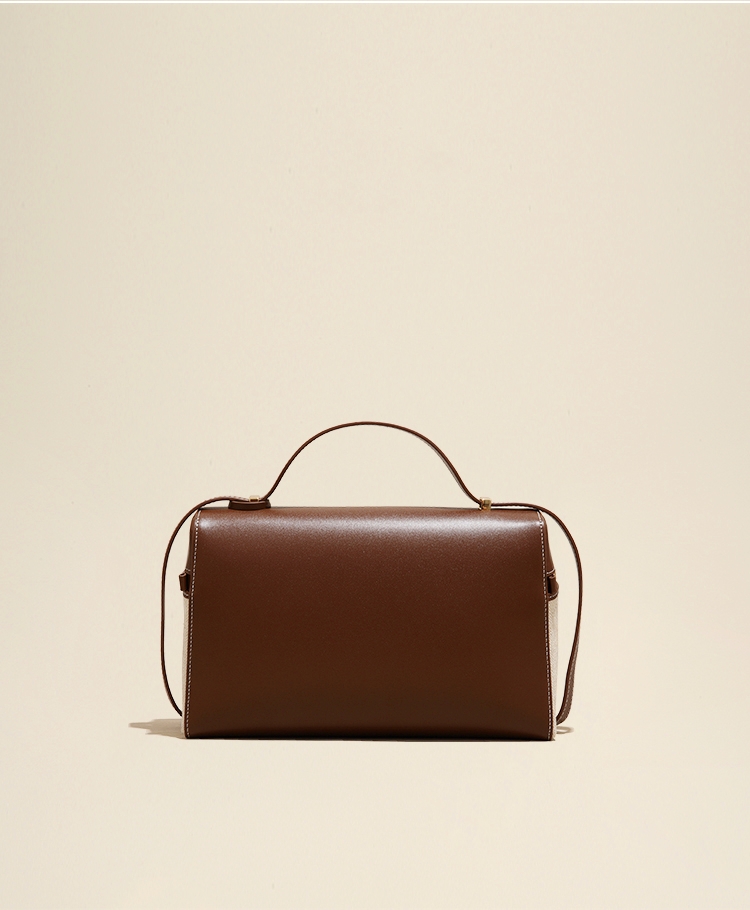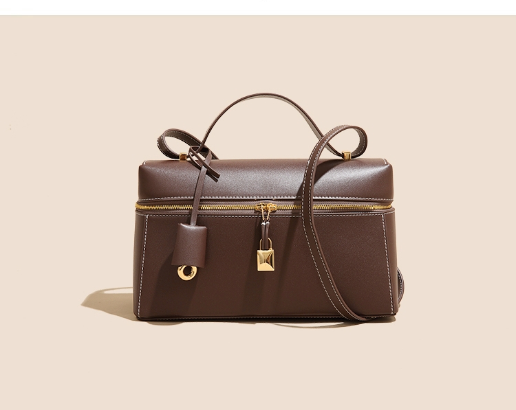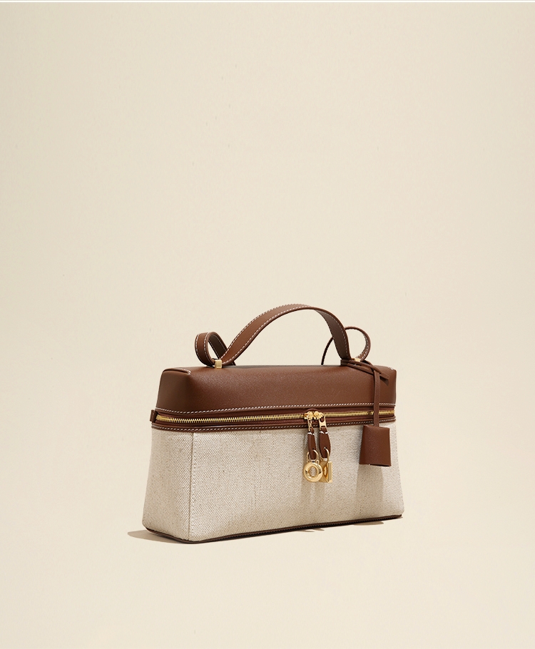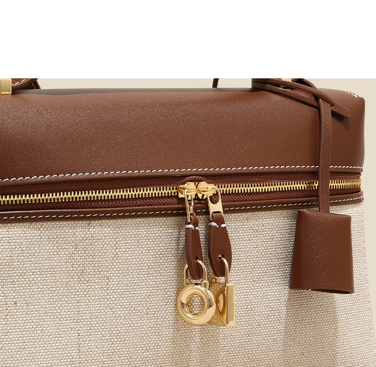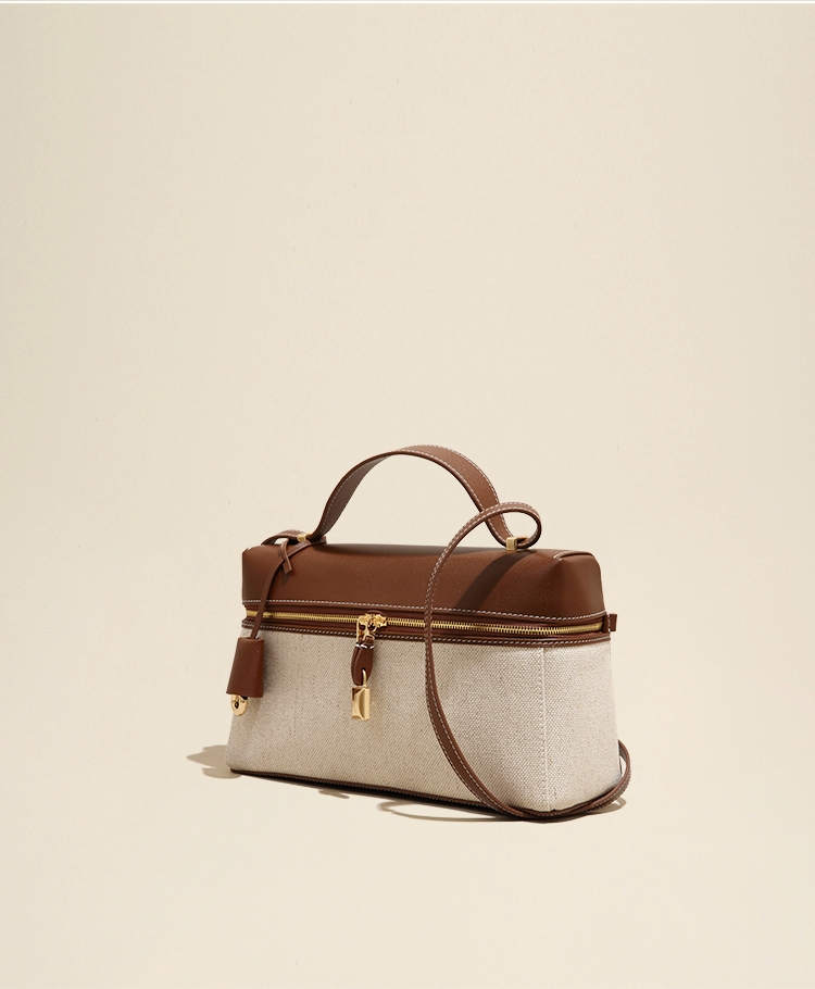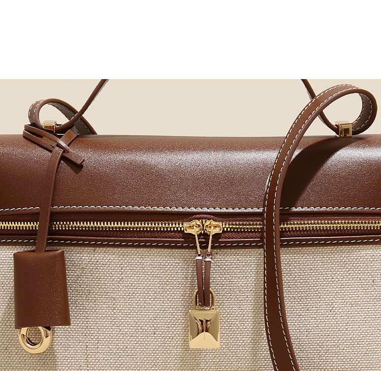 TOUCH MISS法式真皮拼帆布手提饭盒包包女2025新款时尚百搭斜挎包
