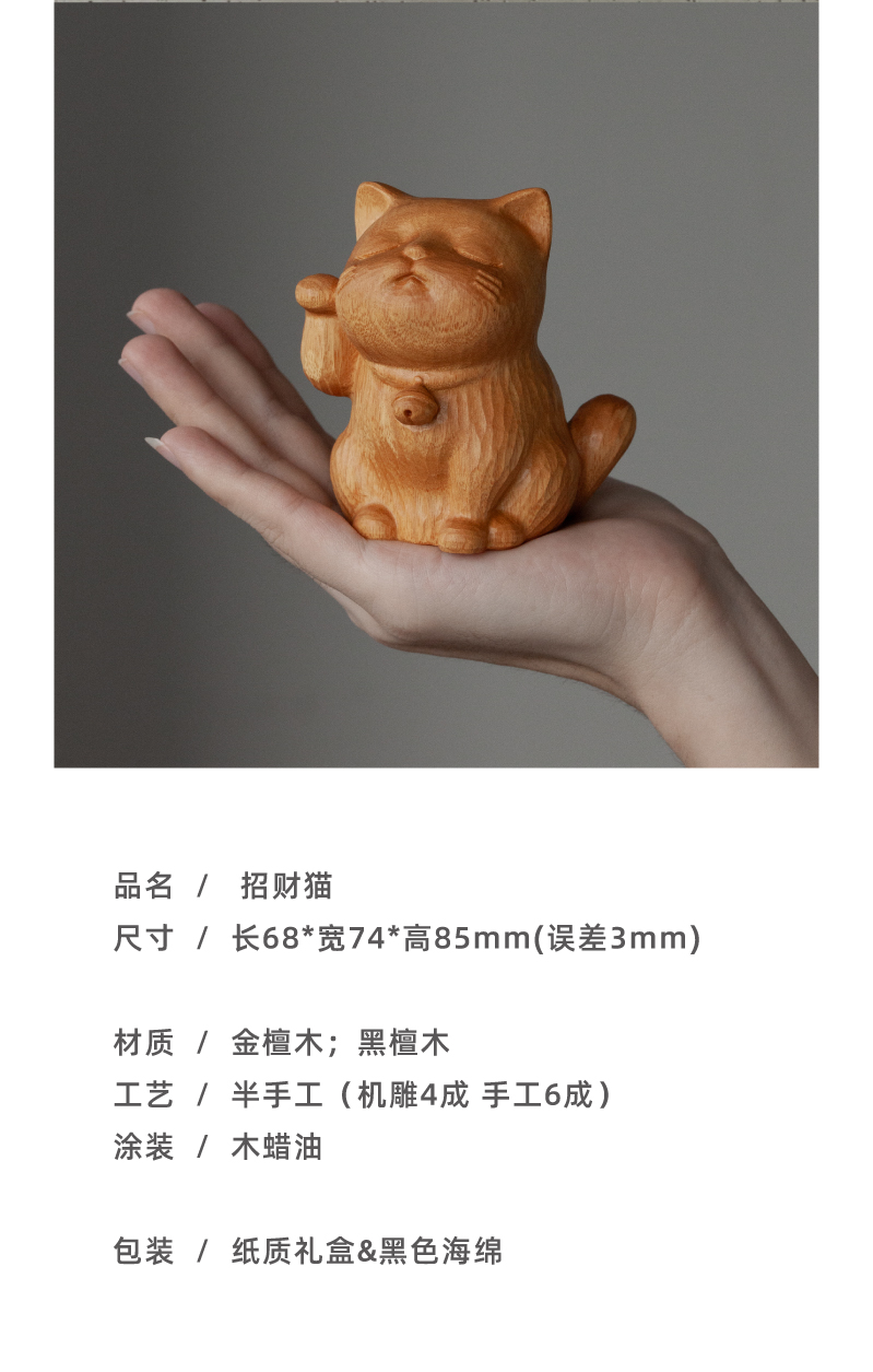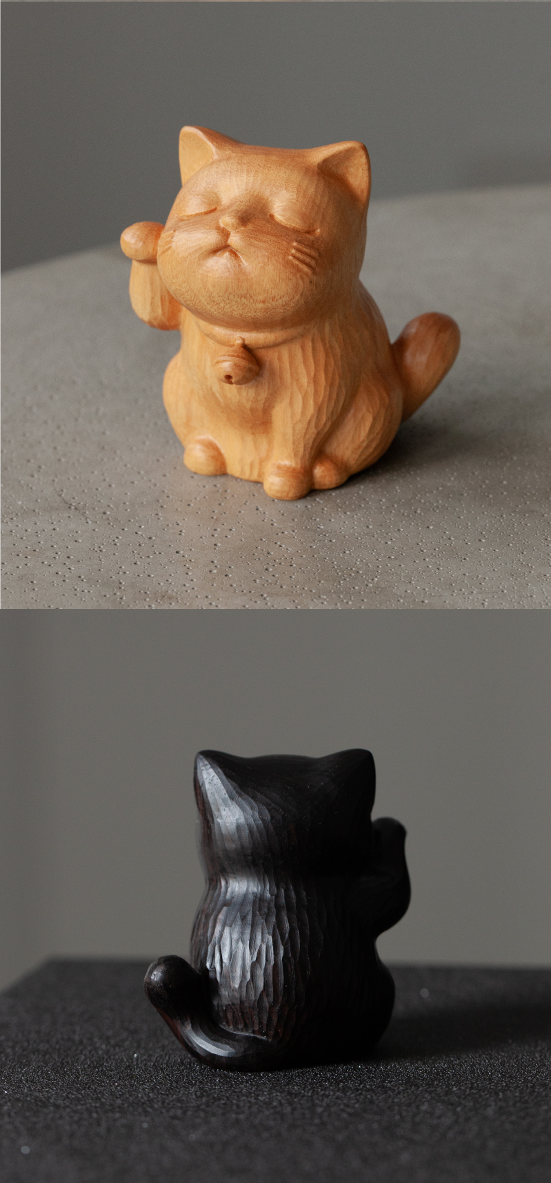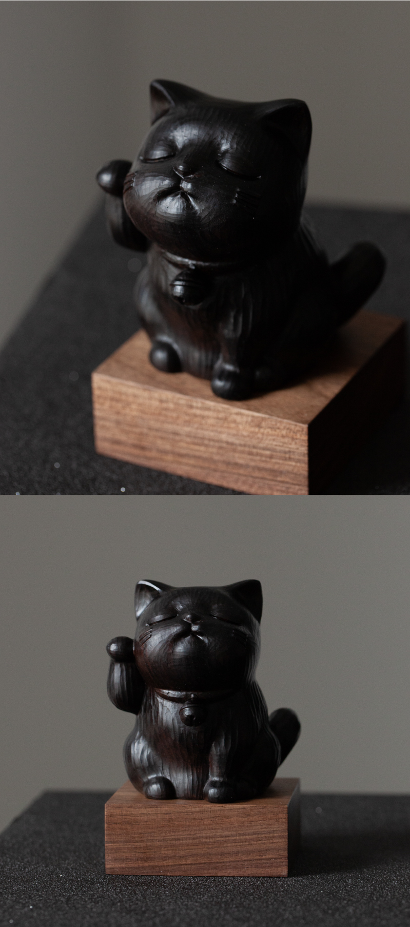 元也先生原创艺术家居客厅办公桌摆件可爱招财猫木雕黑檀木金檀木
