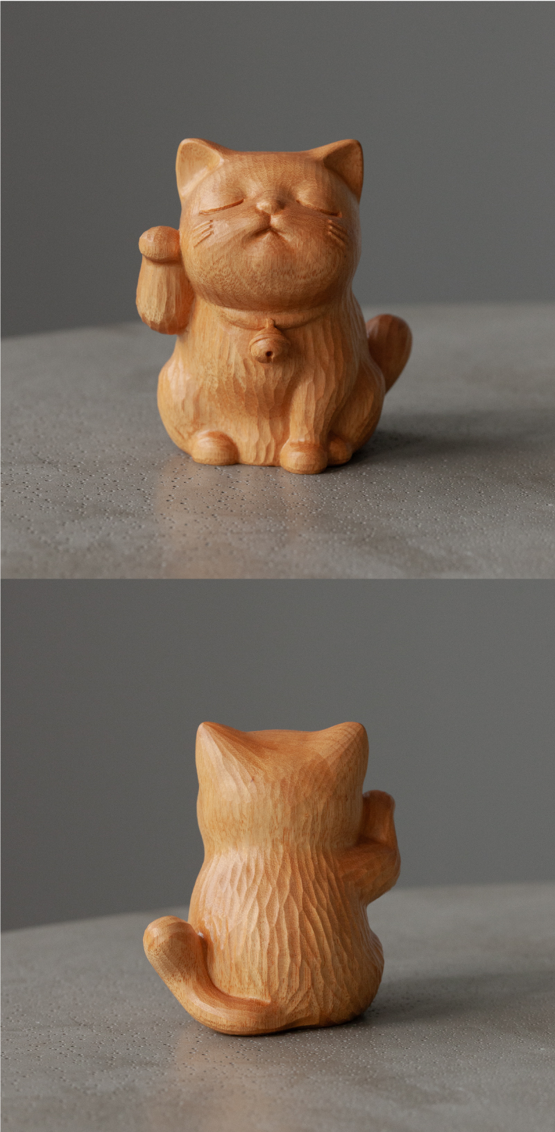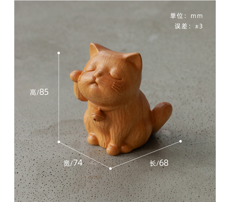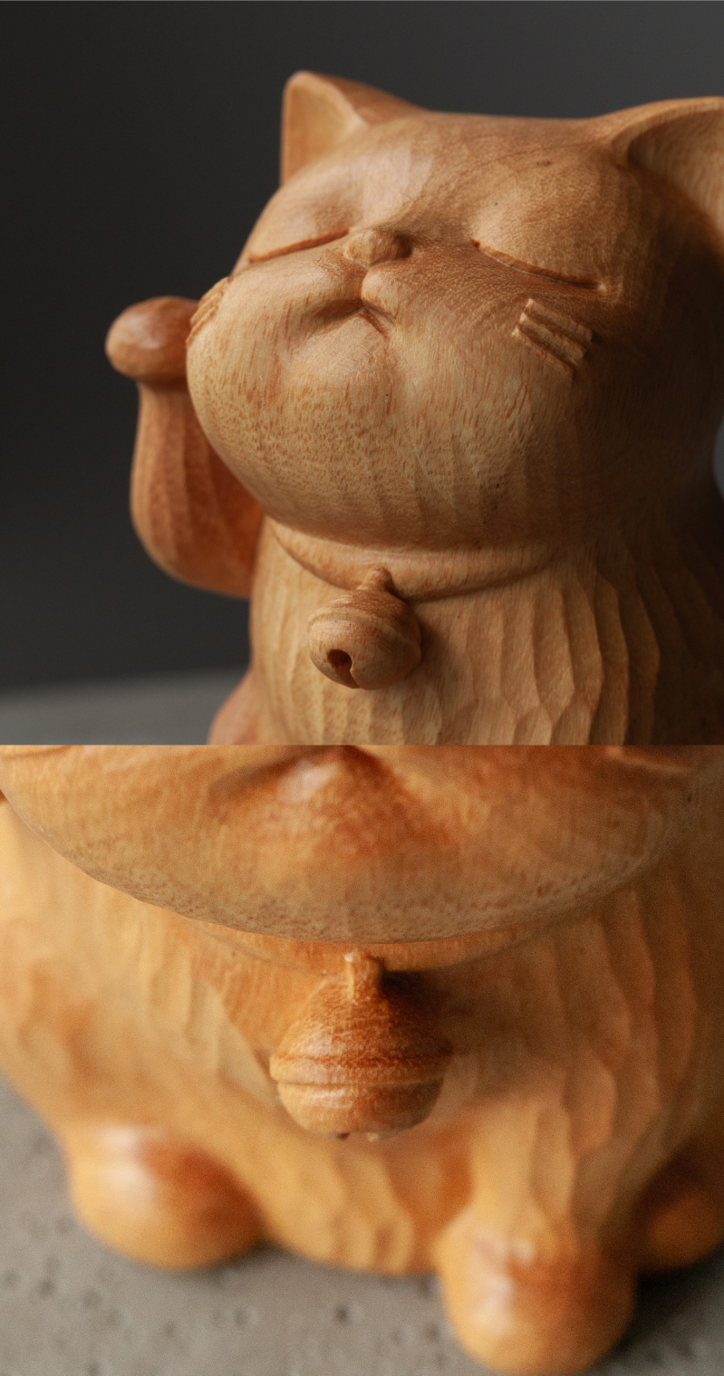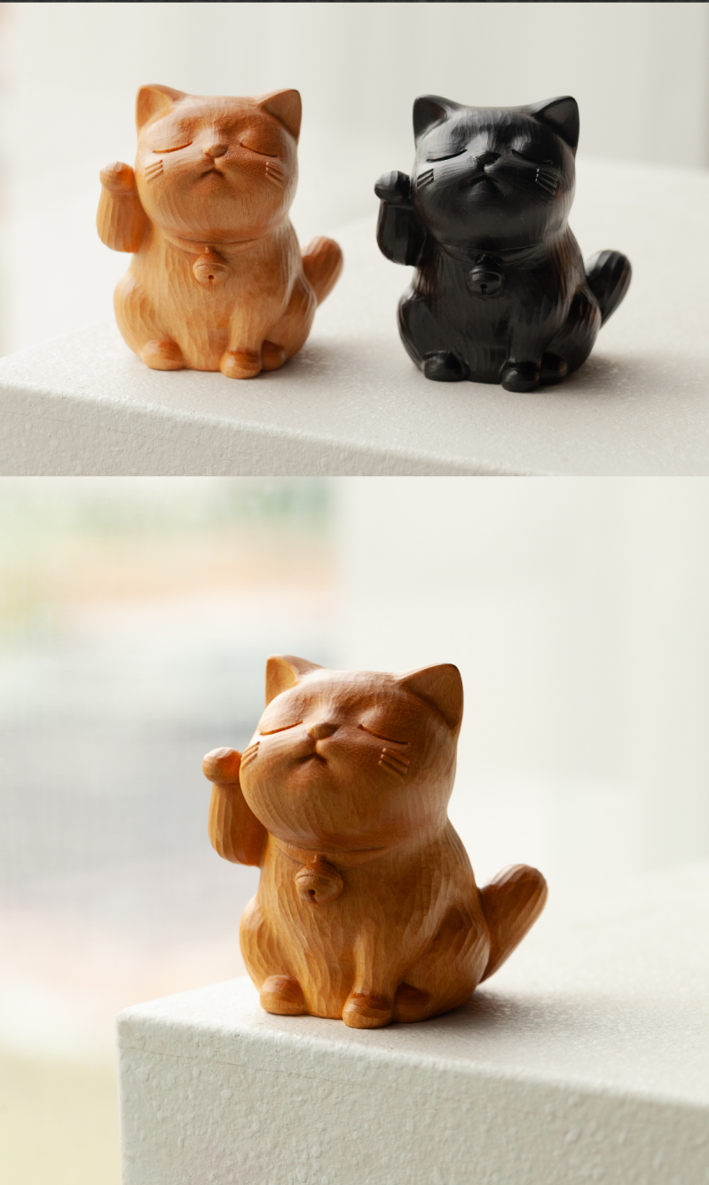 元也先生原创艺术家居客厅办公桌摆件可爱招财猫木雕黑檀木金檀木