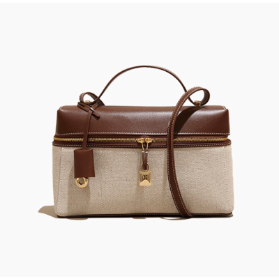 TOUCH MISS法式真皮拼帆布手提饭盒包包女2025新款时尚百搭斜挎包