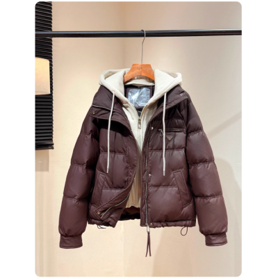 免洗PU皮羽绒服女短款小个子2025年冬季新款白鸭绒卫衣帽防寒服