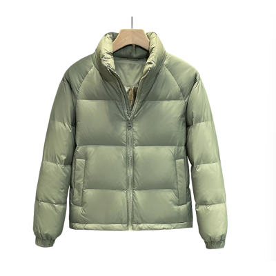 鹅绒羽绒服女冬季轻薄短款立领外套藏青色面包服M家棉衣棉服