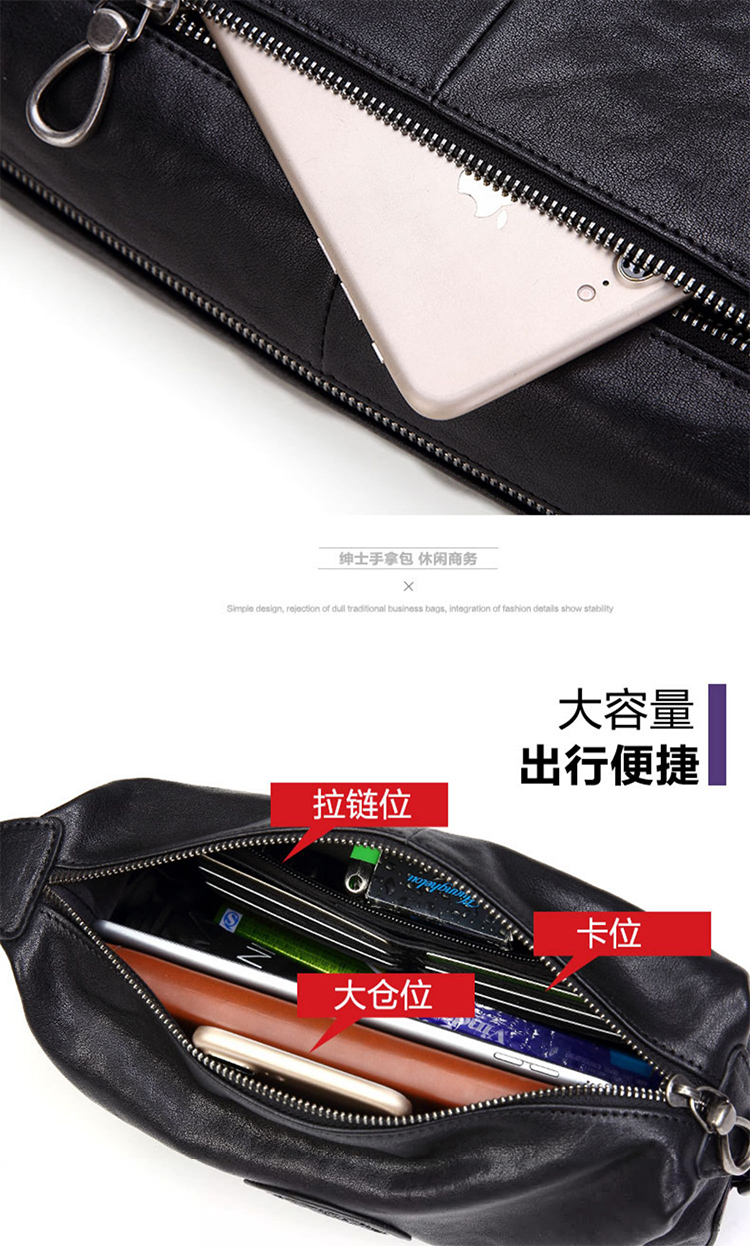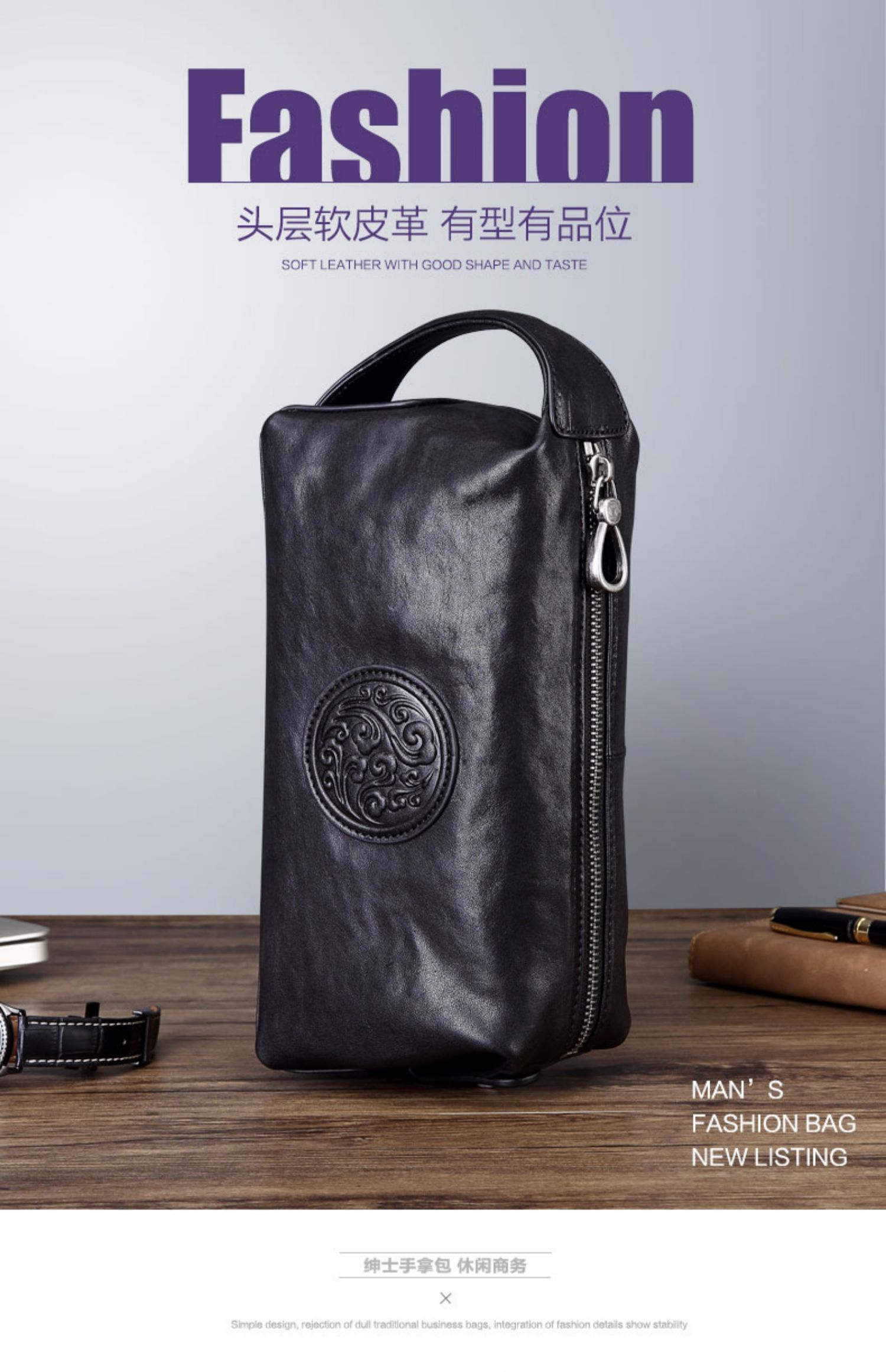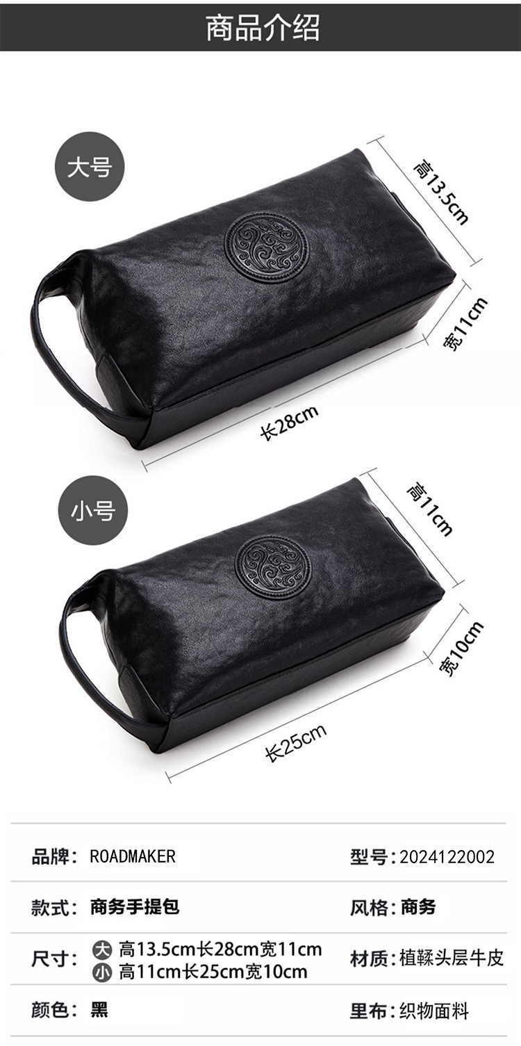 ROADMAKER男士手拿包真皮手包大容量商务手抓包头层牛皮时尚休闲
