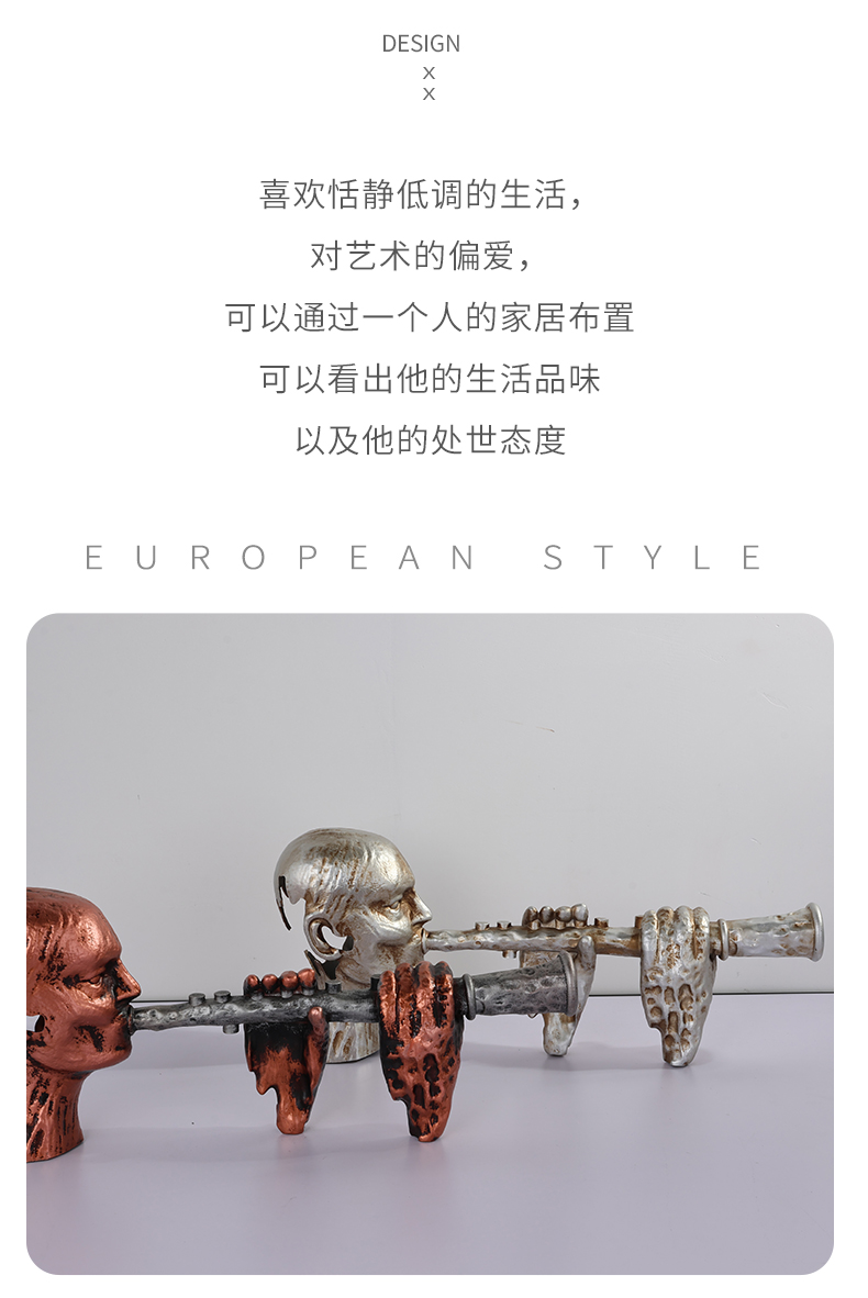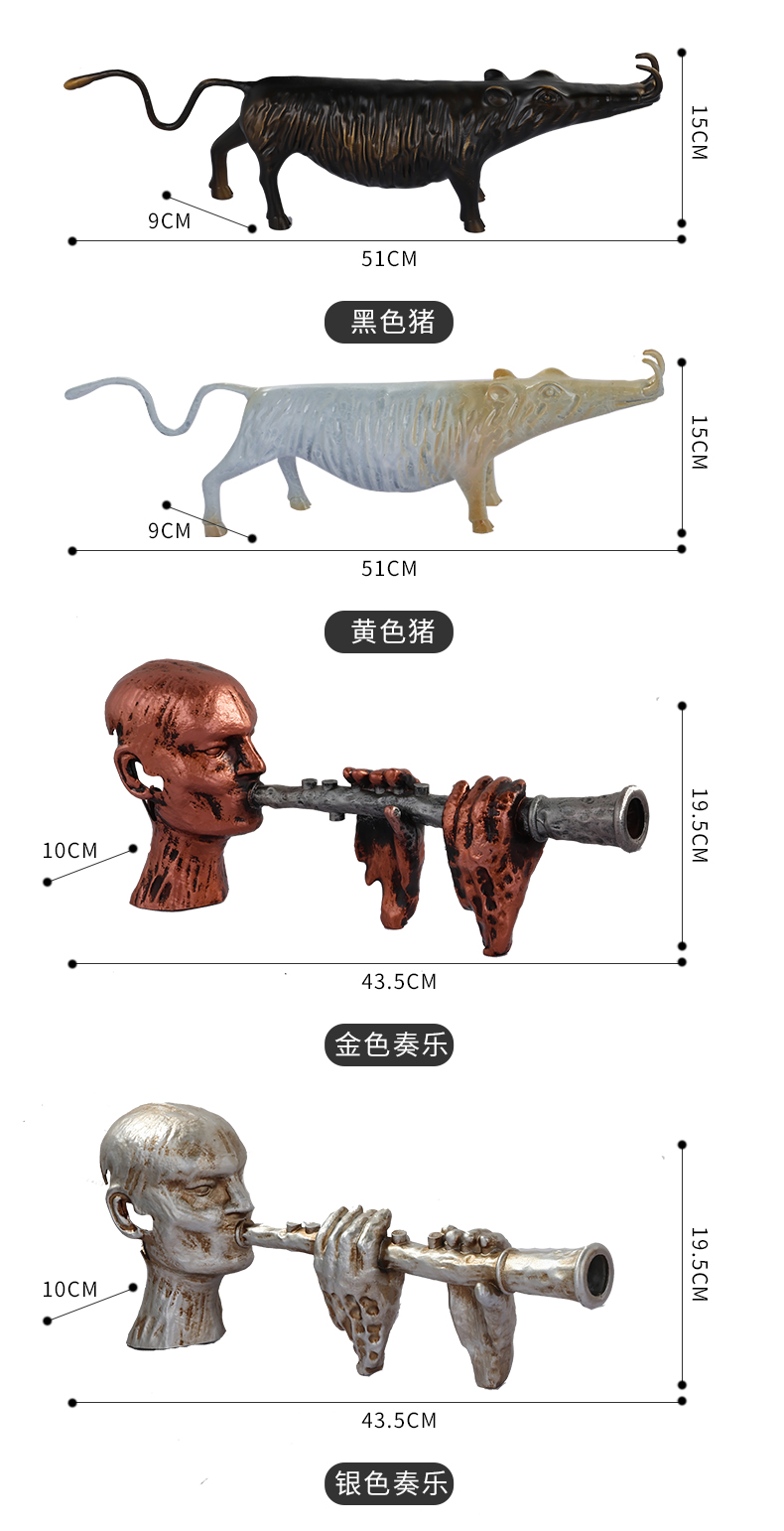 现代轻奢简约五金几何艺术摆件唢呐音乐人样板间柜子动物工艺品