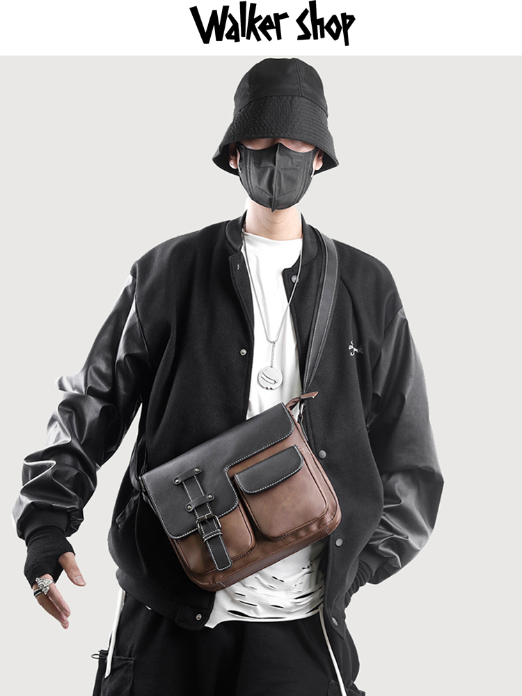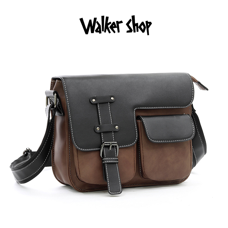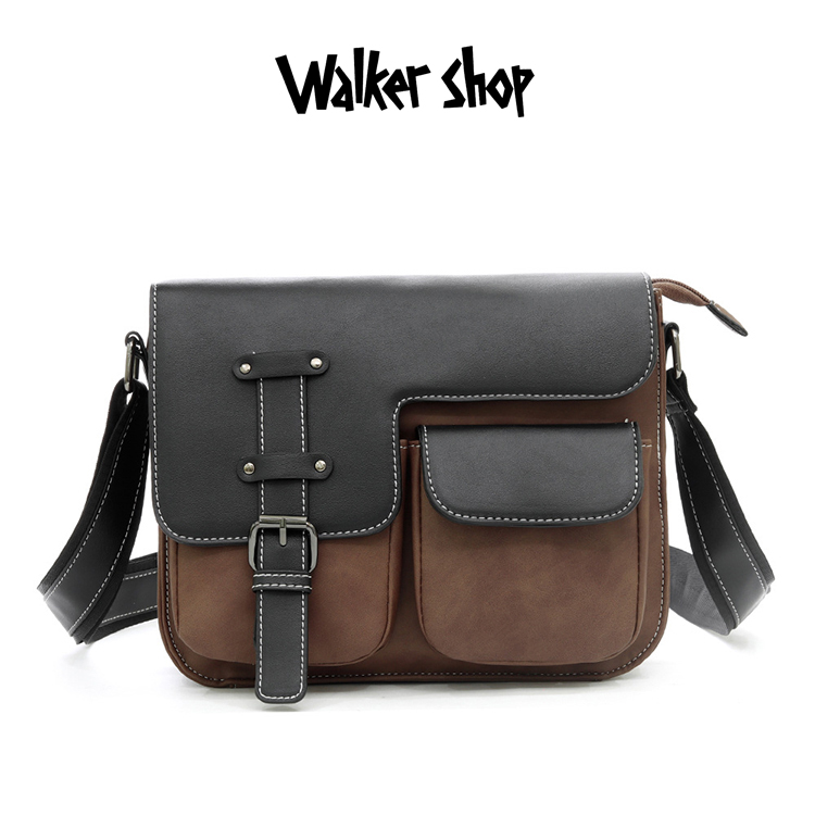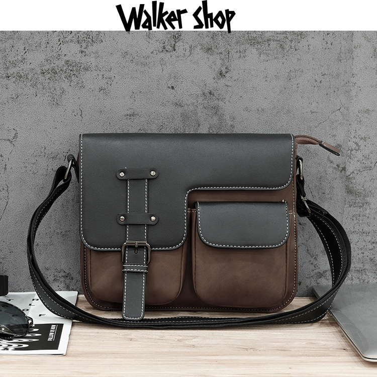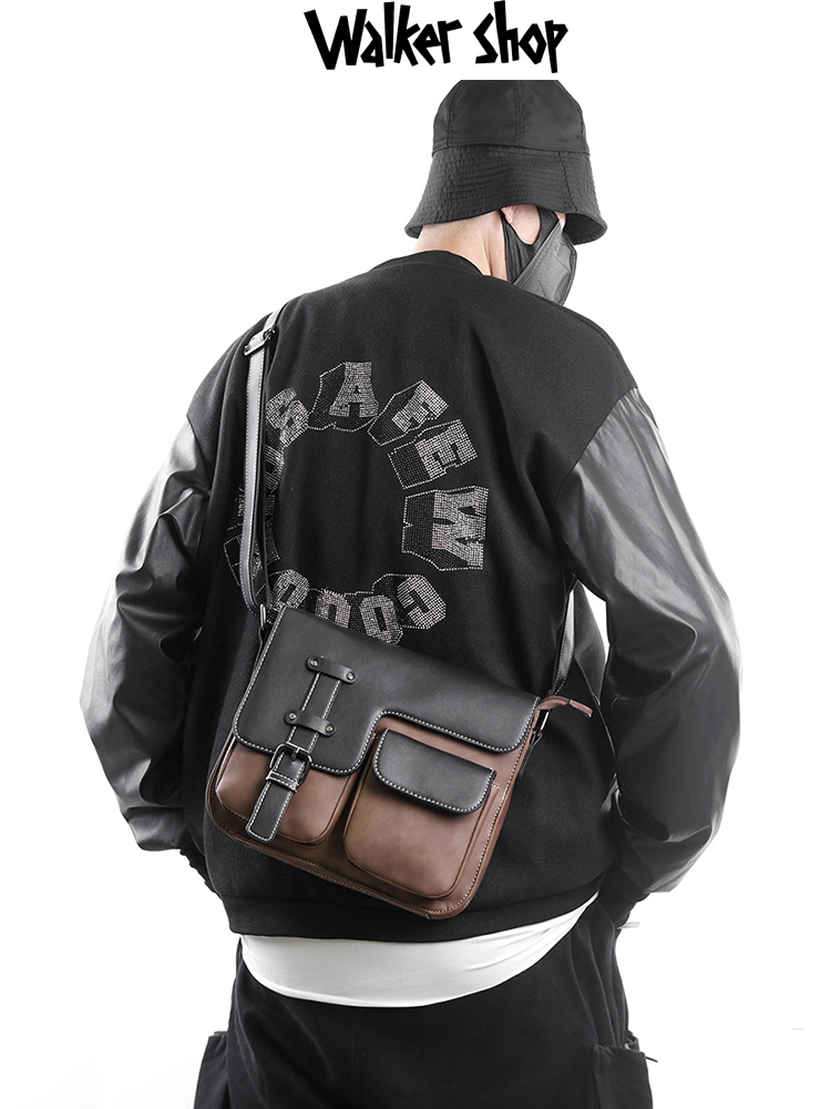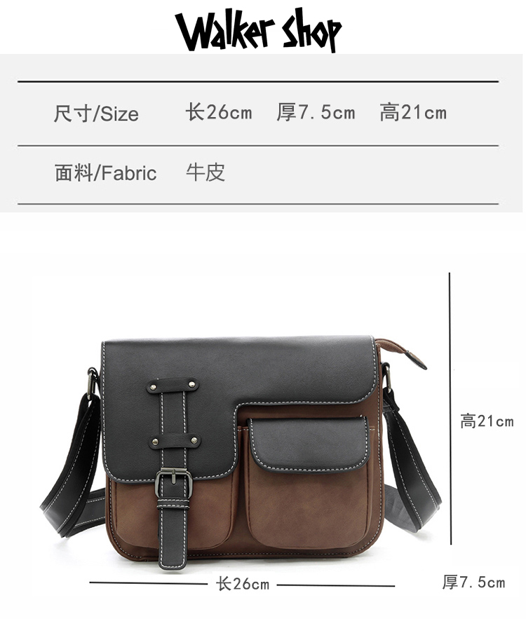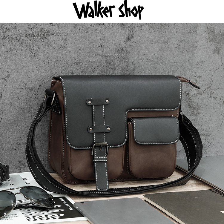 Walker Shop复古真皮男包高级感挎包男单肩邮差包公文牛皮斜挎包