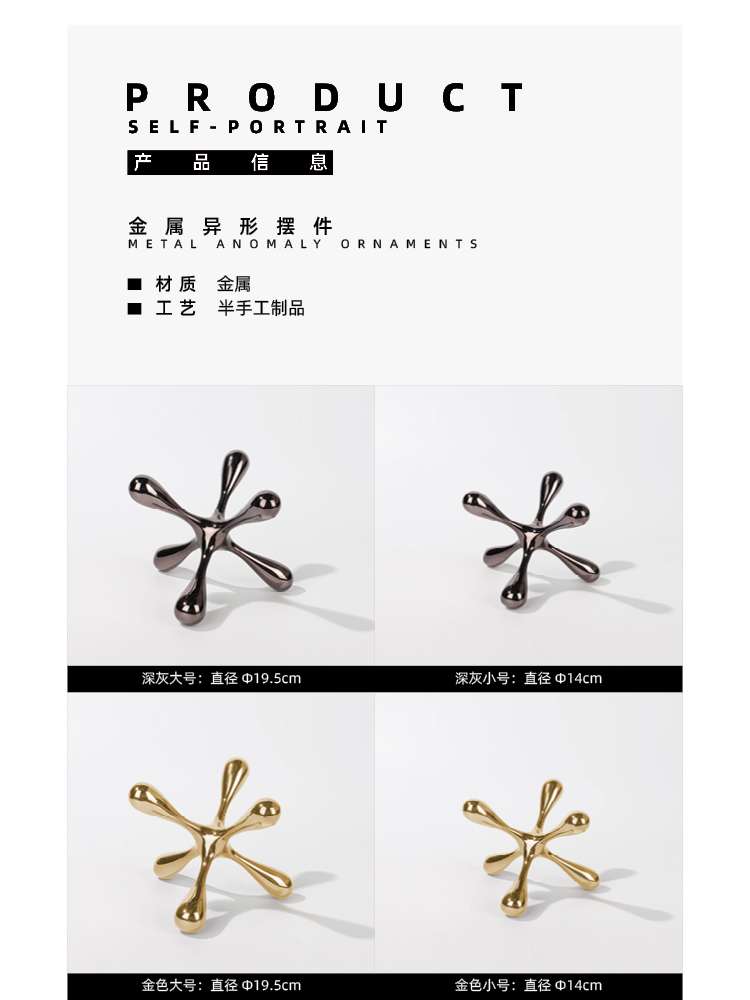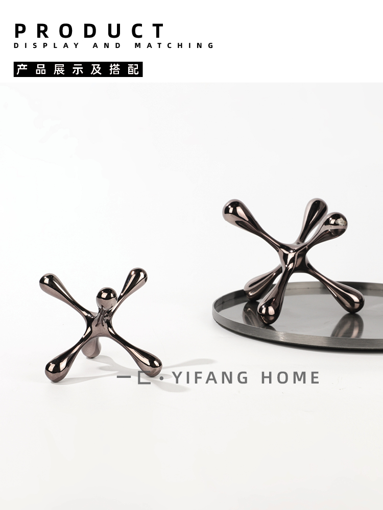 一匚现代简约创意几何异形金属小摆件样板间托盘台面配套软装饰品