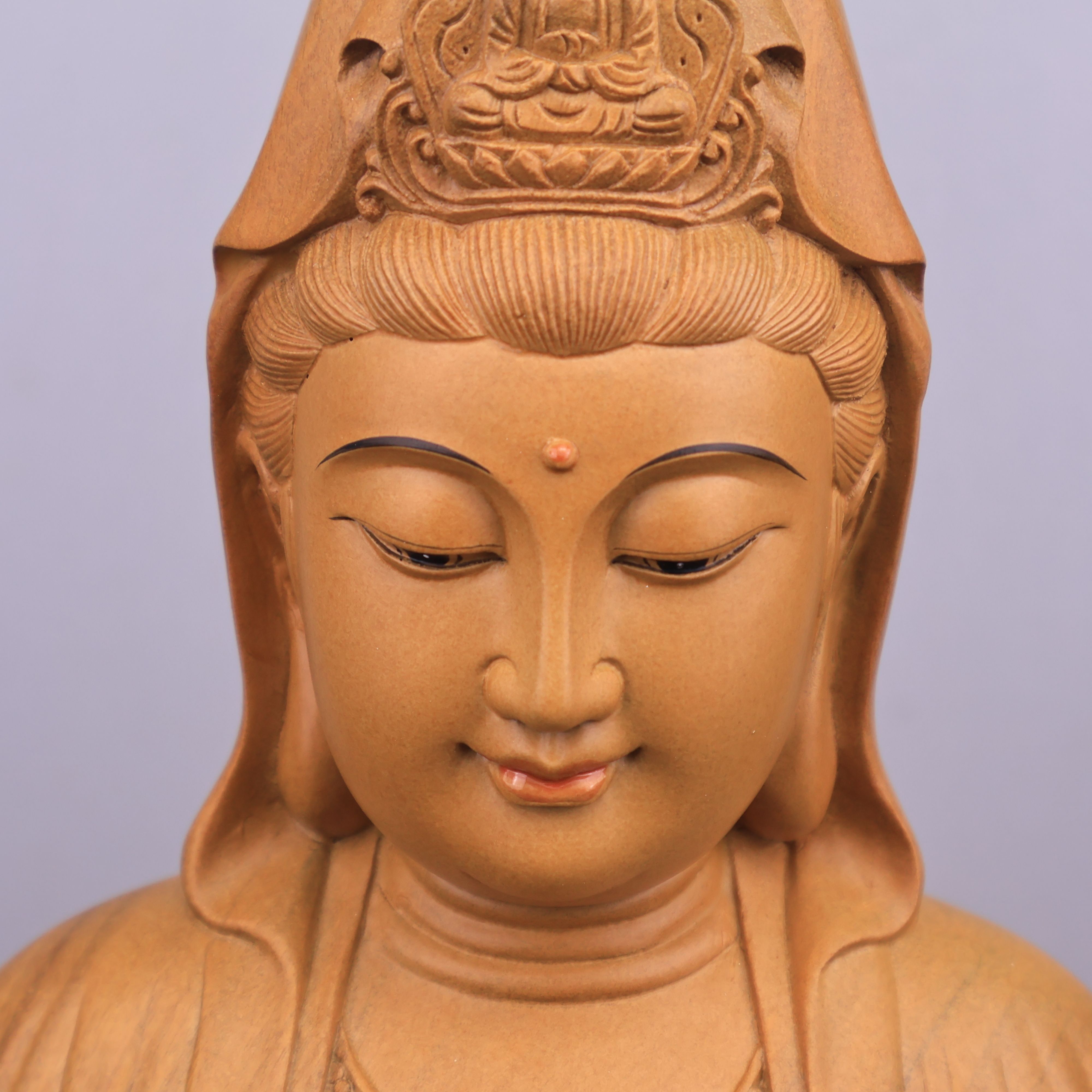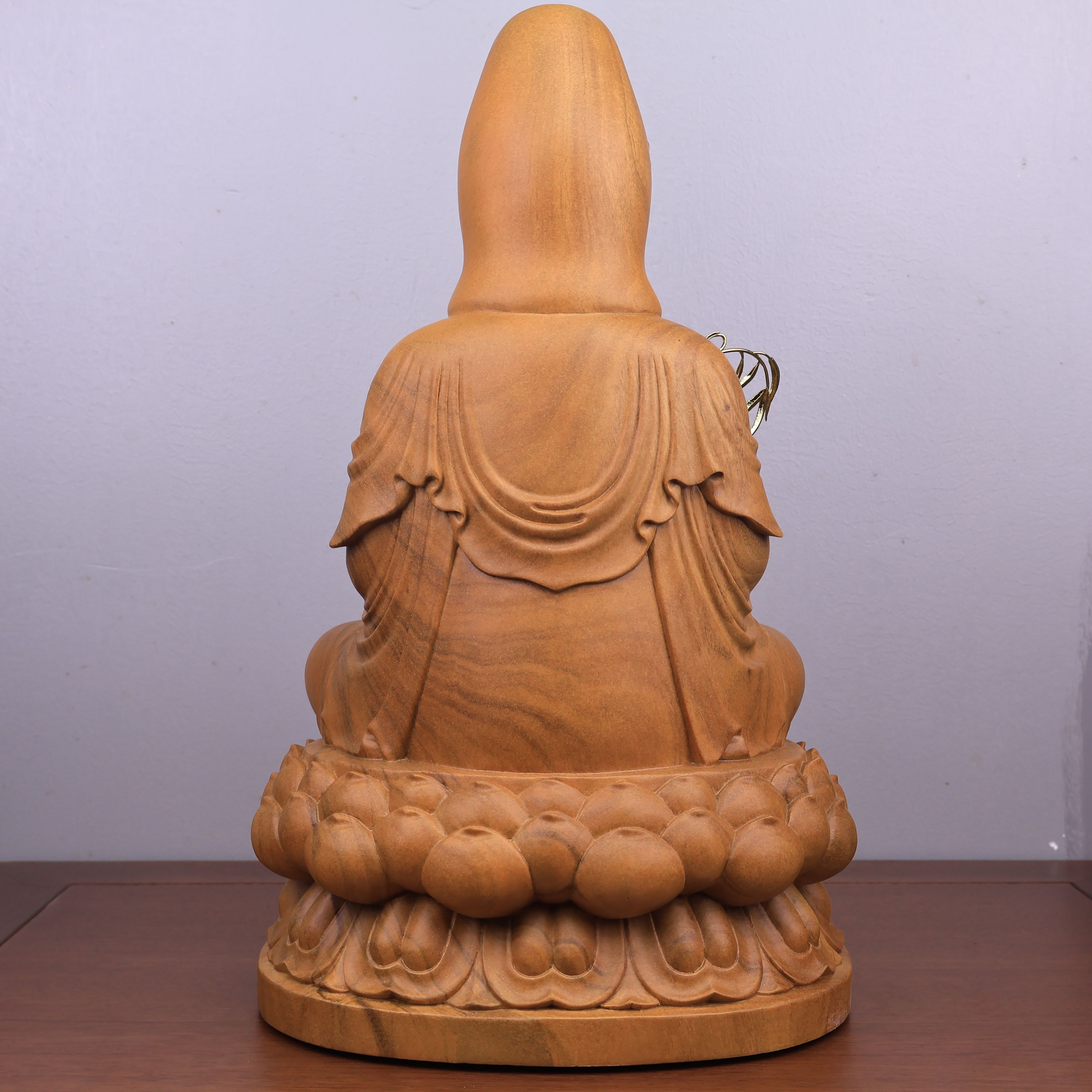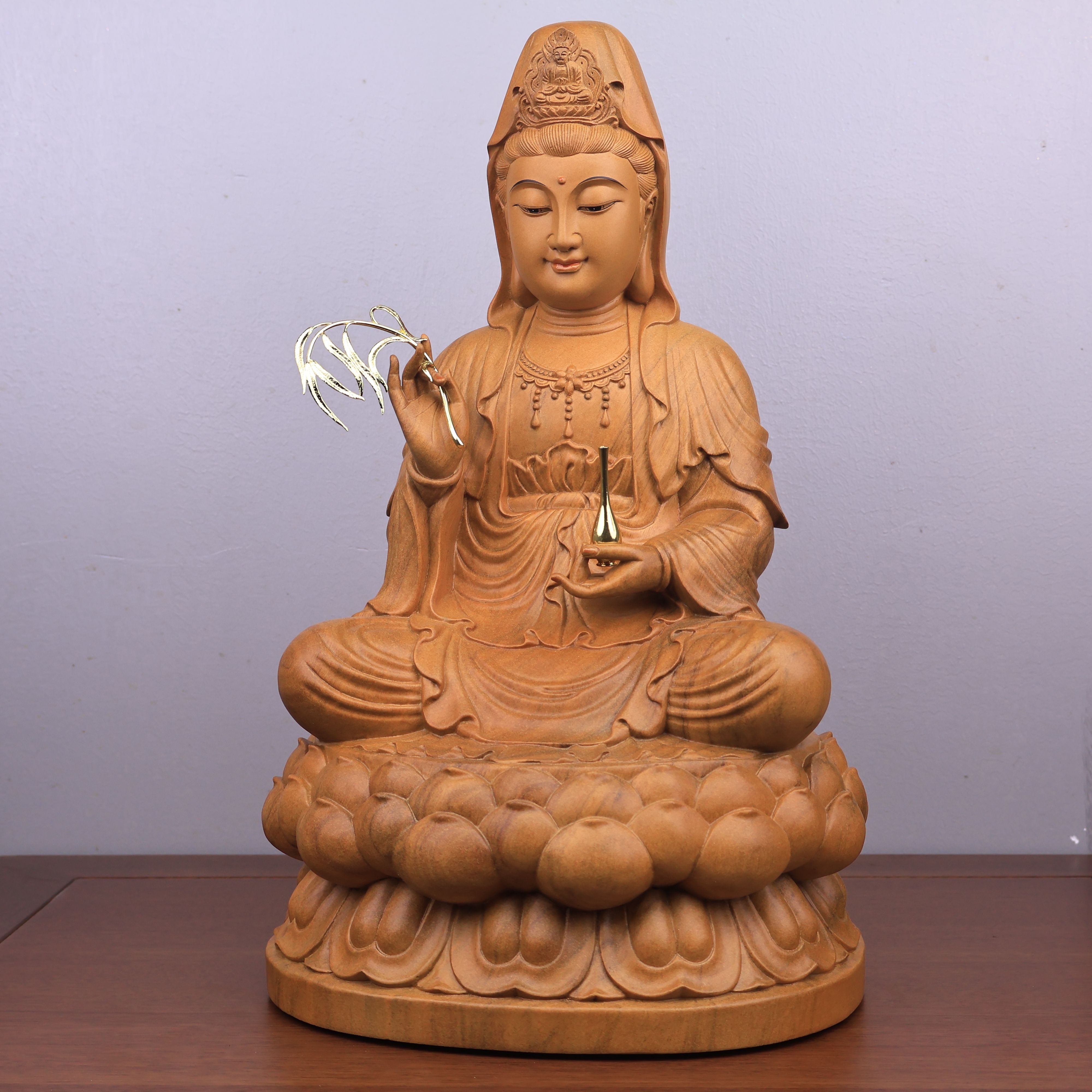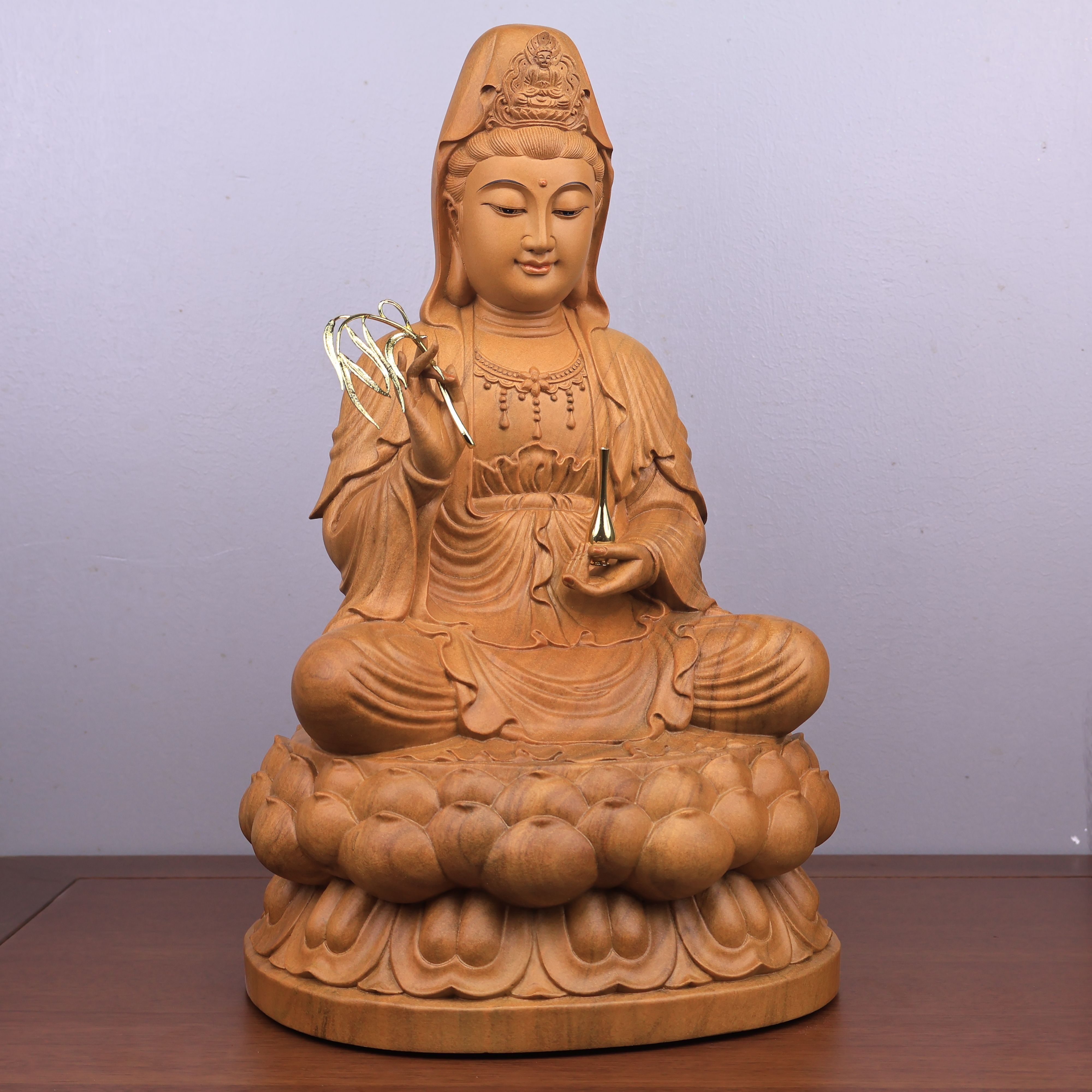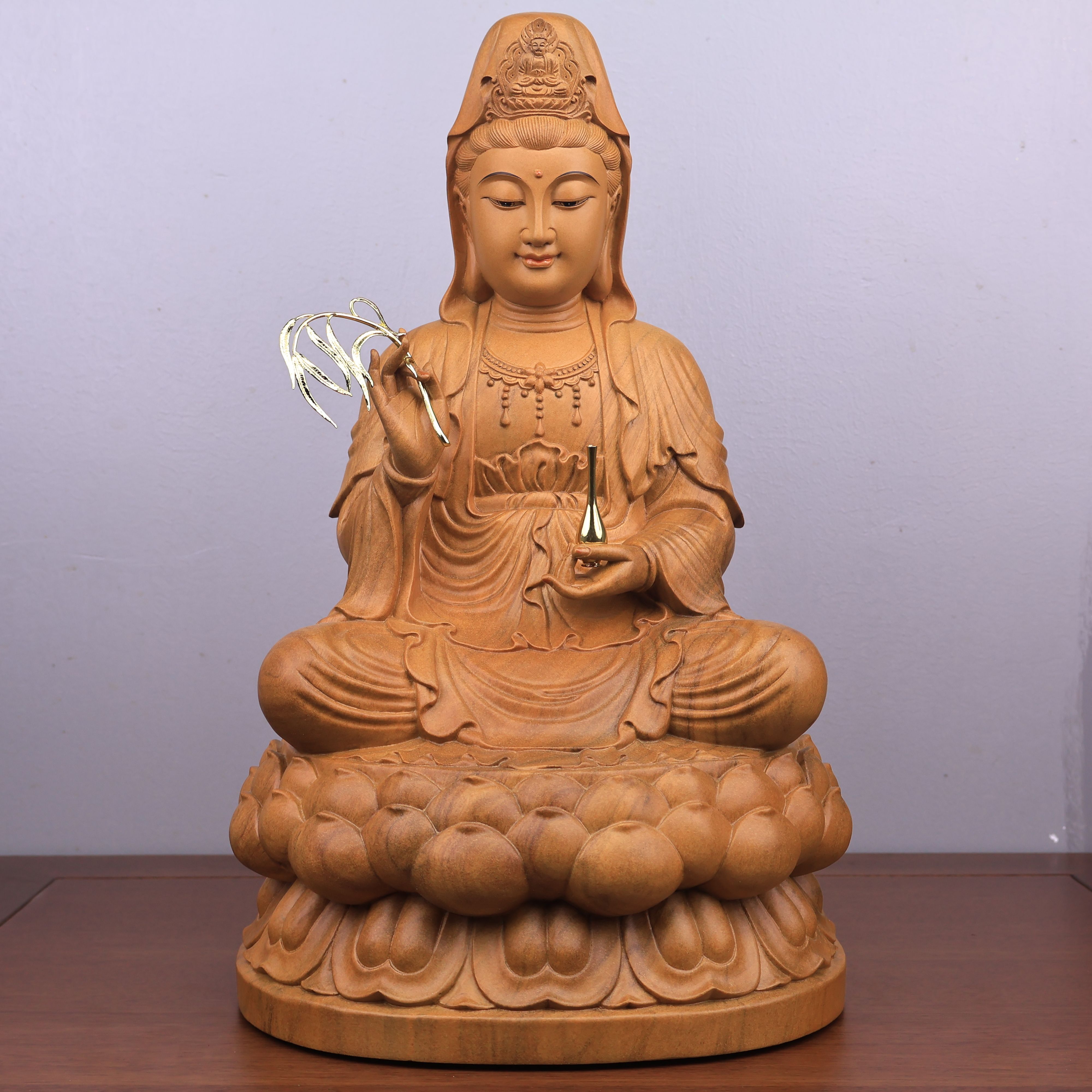 新款香樟木雕观音菩萨家用坐莲观音佛像供奉摆件南海观音菩萨神像