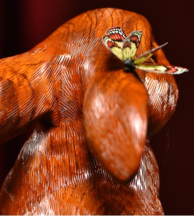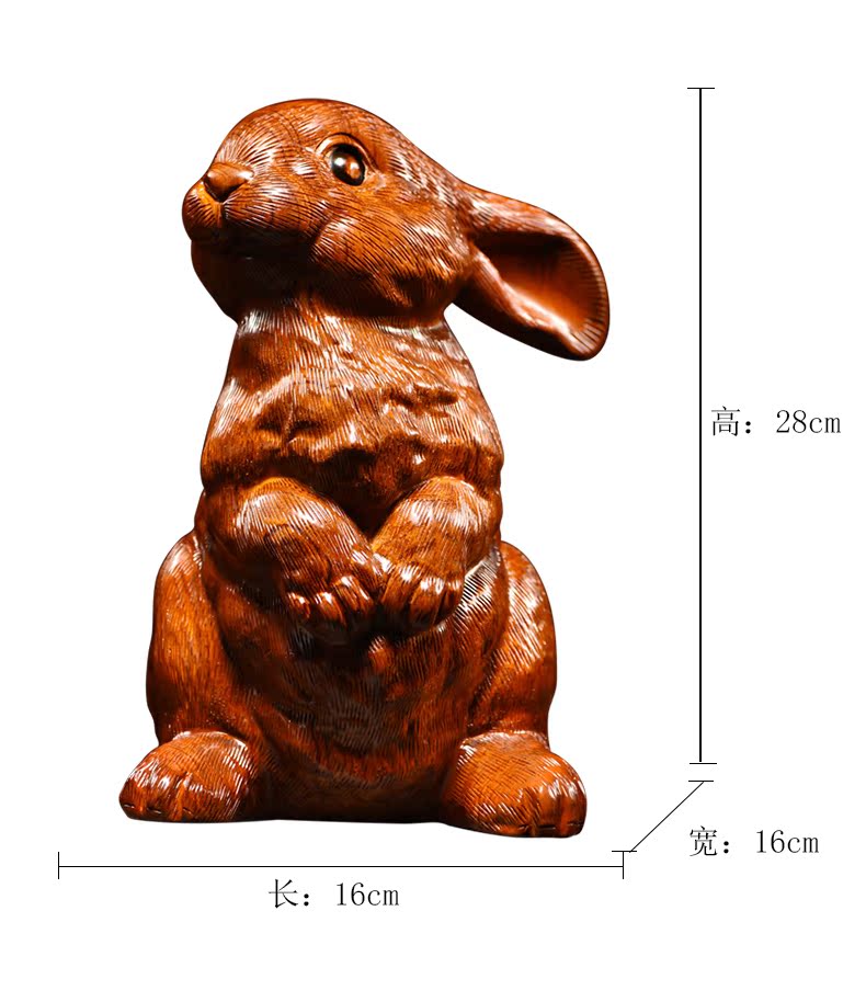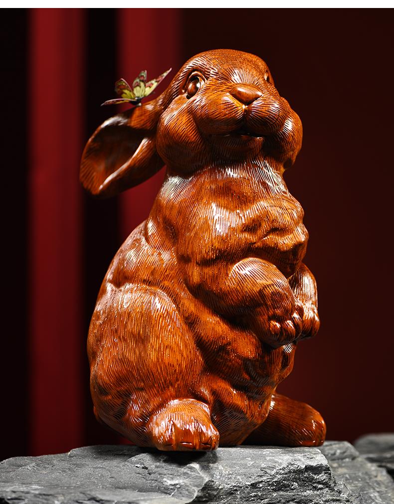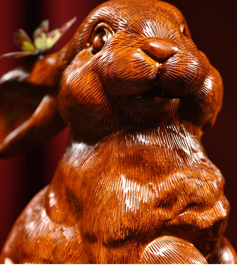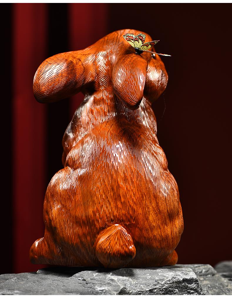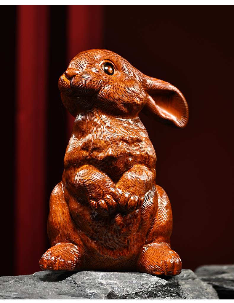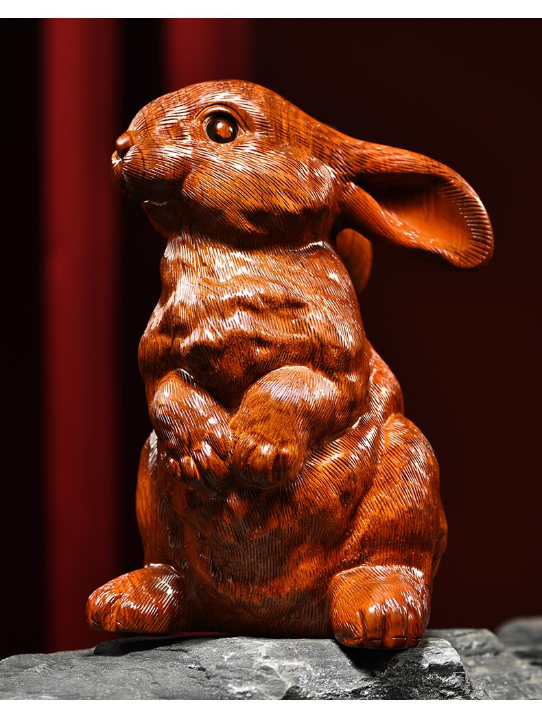 木雕摆件兔子实木头质雕刻动物家居中式客厅办公桌面生肖工艺礼品