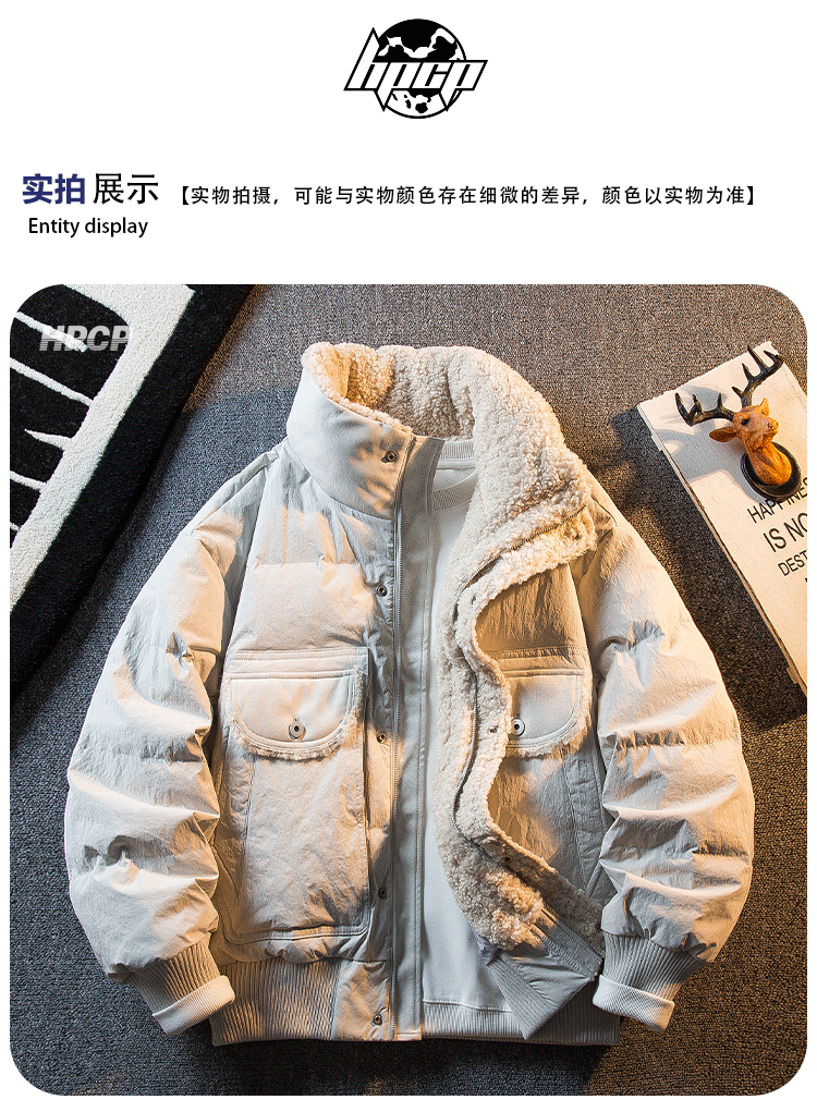 HPCP重磅加厚羊羔绒拼接羽绒外套男冬季保暖立领羽绒服夹克男冬装